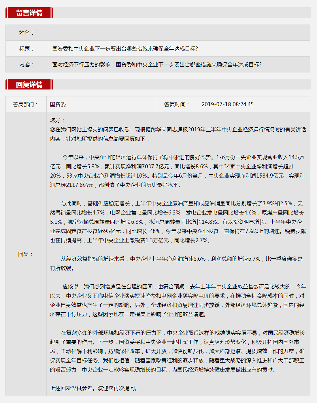 第三季(ji)度國資委網站(zhan)政務咨詢欄目部(bu)分(fen)(fen)網友提(ti)出的咨詢,我們初步做出了認真的回應,現選(xuan)擇五條關注度高(gao)、點擊量高(gao)的問題,再次推薦分(fen)(fen)享。