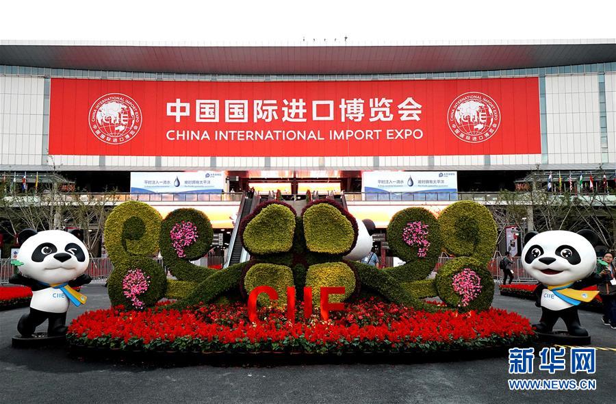 在(zai)國家(jia)會展中心(上海)場館外,進(jin)博會吉祥(xiang)物“進(jin)寶(bao)”準備(bei)迎接四(si)方賓(bin)客(2018年(nian)11月4日 新華社記(ji)者 陳飛(fei) 攝)