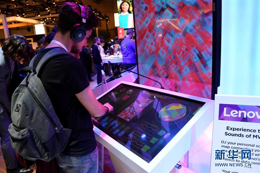 參觀者在西班(ban)牙巴塞羅那舉行的(de)世界移(yi)動通信大會上體驗聯想集團(tuan)推出(chu)的(de)觸屏版個人(ren)DJ系統(2018年3月1日 新華社記者 郭求達 攝)