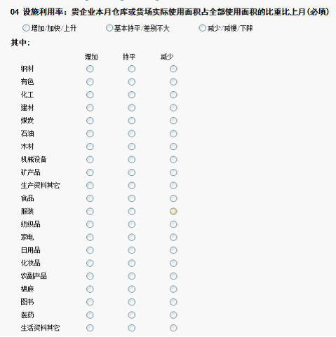 中國(guo)倉儲指數體系調(diao)(diao)查(cha)包含了生(sheng)產資料和(he)消(xiao)費品(pin)兩大(da)類。調(diao)(diao)查(cha)的(de)(de)地(di)區(qu)將覆(fu)蓋全國(guo)(除港(gang)澳臺(tai)和(he)新(xin)疆、西藏等)的(de)(de)主要省市和(he)地(di)區(qu)。調(diao)(diao)查(cha)的(de)(de)企(qi)業(ye)主要是為(wei)社會提供第三方倉儲及配(pei)套服務的(de)(de)物(wu)流企(qi)業(ye)。主要是指綜合性(xing)倉庫(ku)(ku)和(he)專(zhuan)業(ye)性(xing)倉庫(ku)(ku)。不包括生(sheng)產企(qi)業(ye)的(de)(de)自營倉庫(ku)(ku)和(he)用戶的(de)(de)自用倉庫(ku)(ku)。