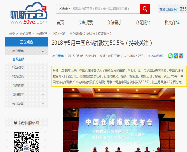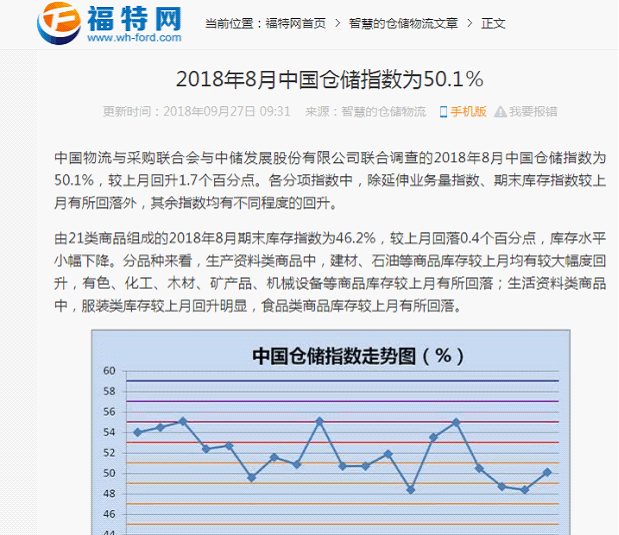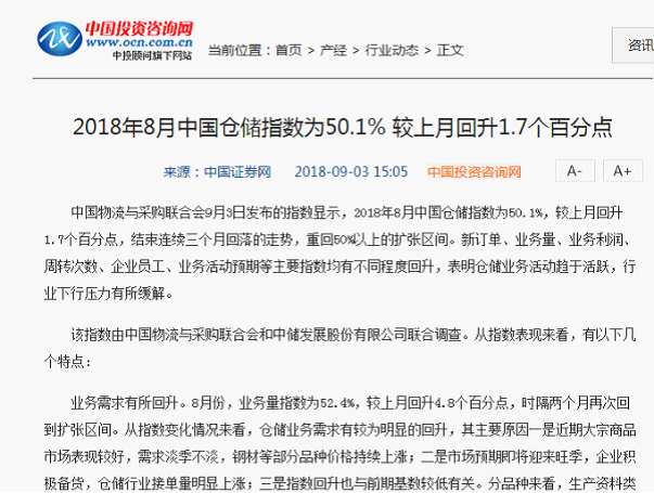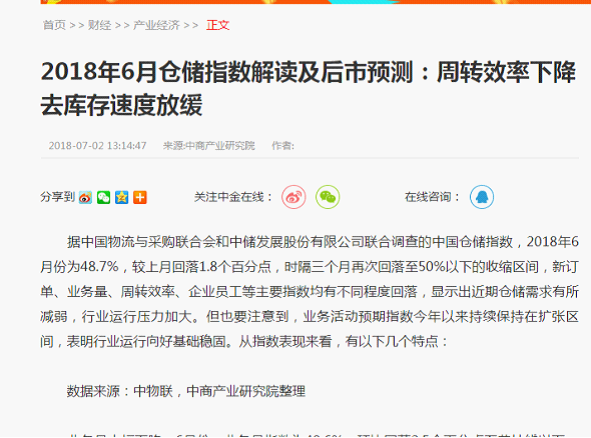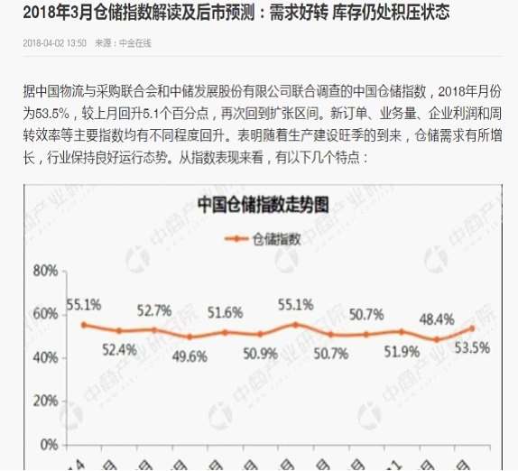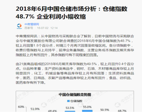 從中國倉儲指數看2018年倉儲行業形勢