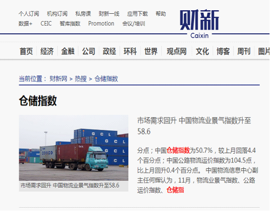11月中國倉儲指數顯示:需求保持旺盛 行業運行向好