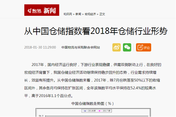 2018年1月中國倉儲指數為51.9%