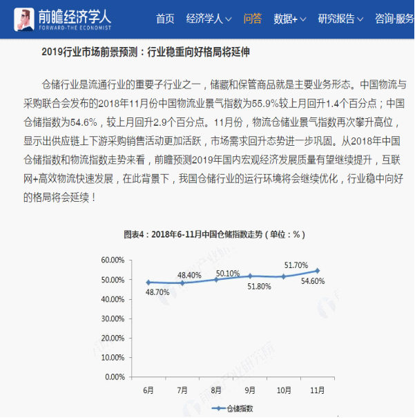 2018年11月中國倉儲指數為54.6%