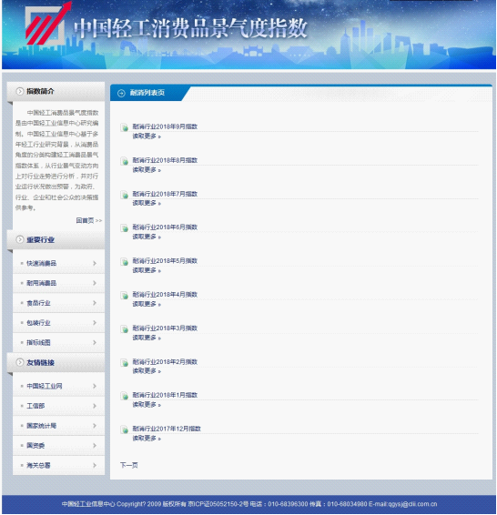 如果說中國(guo)輕(qing)工(gong)業景氣(qi)度(du)指數(shu)發(fa)布是對輕(qing)工(gong)行(xing)業總量的分析(xi)(xi)與(yu)研究(jiu), 而(er)中國(guo)輕(qing)工(gong)消費(fei)品景氣(qi)度(du)指數(shu)發(fa)布則(ze)是對輕(qing)工(gong)行(xing)業結(jie)(jie)構化(hua)的分析(xi)(xi)與(yu)探索(suo)。2018年通(tong)過該項目的實施,彌補了以(yi)前(qian)年度(du)只做(zuo)行(xing)業總量分析(xi)(xi)而(er)缺(que)少(shao)結(jie)(jie)構化(hua)分析(xi)(xi)的不足。具體工(gong)作(zuo)如下: