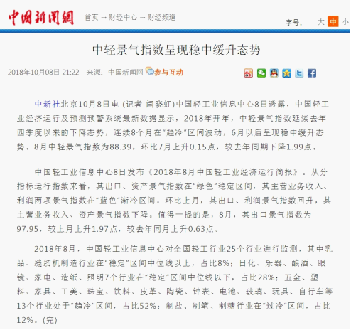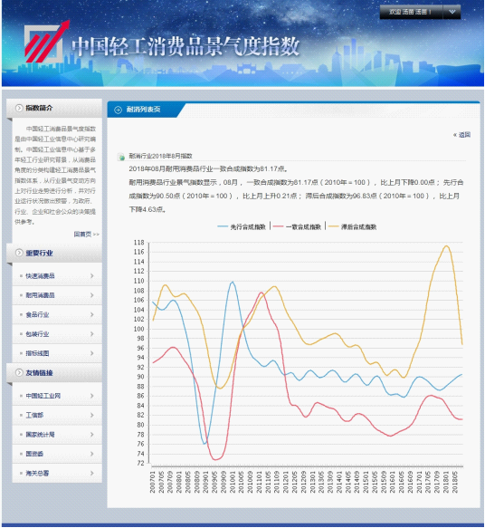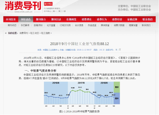 截止2018年(nian)底,中(zhong)國(guo)(guo)輕(qing)工業景氣度指(zhi)數發布已經歷(li)了(le)八個(ge)年(nian)頭(tou)而中(zhong)國(guo)(guo)輕(qing)工消費(fei)品景氣度指(zhi)數自(zi)2016年(nian)開(kai)始發布也走(zou)到了(le)第三(san)個(ge)年(nian)頭(tou)。