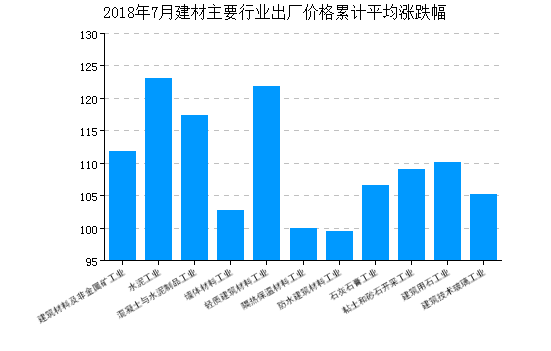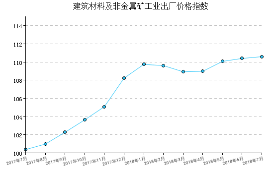 2018年7月(yue)(yue),建材(cai)價(jia)格(ge)指(zhi)數(shu)為110.59,比(bi)(bi)上(shang)(shang)月(yue)(yue)上(shang)(shang)漲(zhang)(zhang)0.18%,比(bi)(bi)去年同(tong)月(yue)(yue)上(shang)(shang)漲(zhang)(zhang)10.18%,一(yi)月(yue)(yue)至本(ben)月(yue)(yue)平均比(bi)(bi)去年同(tong)期上(shang)(shang)漲(zhang)(zhang)11.35%。 價(jia)格(ge)指(zhi)數(shu)比(bi)(bi)上(shang)(shang)月(yue)(yue)上(shang)(shang)漲(zhang)(zhang)的(de)行業(ye)(ye)有:混凝土與水泥(ni)制(zhi)品工(gong)業(ye)(ye)、輕(qing)質建筑(zhu)材(cai)料(liao)工(gong)業(ye)(ye)、隔熱保溫材(cai)料(liao)工(gong)業(ye)(ye)、石灰石膏(gao)工(gong)業(ye)(ye)、粘土和砂石開(kai)采(cai)工(gong)業(ye)(ye)、建筑(zhu)技(ji)術玻璃工(gong)業(ye)(ye)、;價(jia)格(ge)指(zhi)數(shu)比(bi)(bi)上(shang)(shang)月(yue)(yue)下降的(de)行業(ye)(ye)有水泥(ni)工(gong)業(ye)(ye)、墻體材(cai)料(liao)工(gong)業(ye)(ye)、防水建筑(zhu)材(cai)料(liao)工(gong)業(ye)(ye)、建筑(zhu)用石工(gong)業(ye)(ye)。