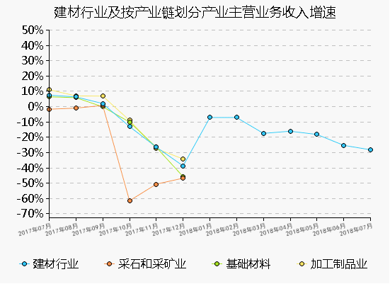 2018年7月規模以上(shang)工(gong)業(ye)增(zeng)(zeng)(zeng)加值同比增(zeng)(zeng)(zeng)長6.00%,累計增(zeng)(zeng)(zeng)長增(zeng)(zeng)(zeng)長6.60%。 跟其他工(gong)業(ye)行(xing)業(ye)相比,建材行(xing)業(ye)增(zeng)(zeng)(zeng)加值增(zeng)(zeng)(zeng)速低于設(she)備制(zhi)造、電器機械和器材制(zhi)造、電力(li)、熱力(li)生(sheng)產及(ji)供(gong)應等行(xing)業(ye),高于化學原料和化學品制(zhi)造、黑色(se)金屬(shu)冶煉(lian)和壓延、有所金屬(shu)冶煉(lian)和壓延等行(xing)業(ye)。