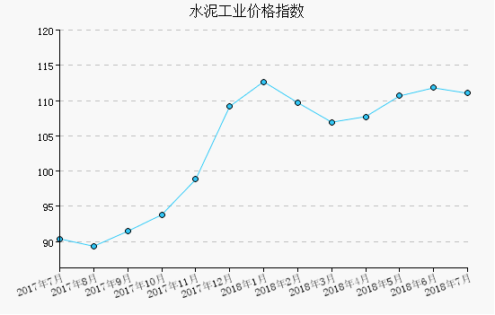 水泥(ni)工業價格指數(shu) (上年同期(qi)=100) |