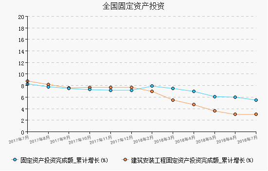2018年(nian)7月全國固(gu)定資(zi)(zi)(zi)產投資(zi)(zi)(zi)累計增速增長(chang)5.5%,其中(zhong)建筑安裝工程(cheng)投資(zi)(zi)(zi)累計增速增長(chang)3%。 圖 4:全國固(gu)定資(zi)(zi)(zi)產投資(zi)(zi)(zi)情況