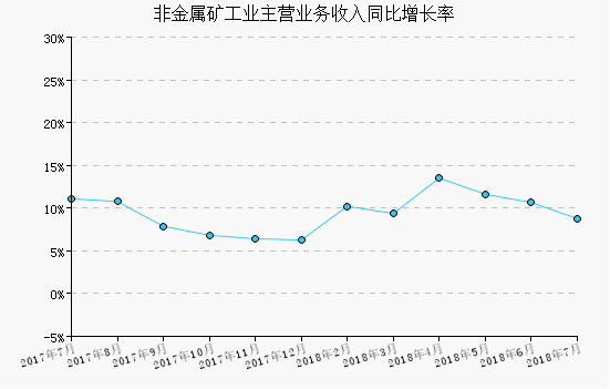圖 7:非金屬礦工業主(zhu)營業務收入增速