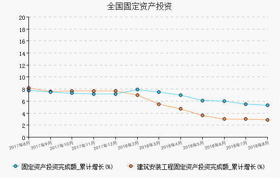 2018年8月全國固定資產(chan)投資累計增速增長(chang)5.3%,其中建筑安裝工程投資累計增速增長(chang)2.9%。 圖 4:全國固定資產(chan)投資情況