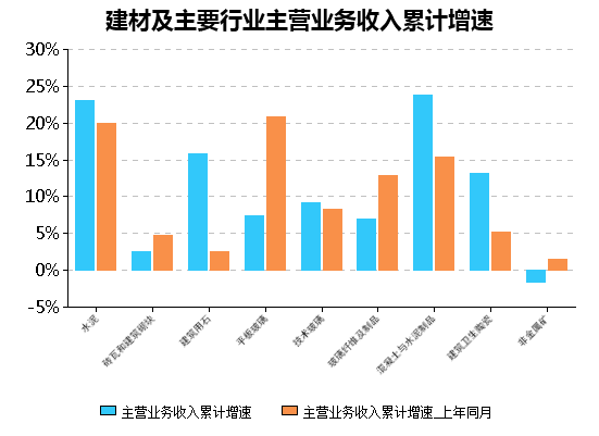 圖 8:建材及主要行(xing)業(ye)主營(ying)業(ye)務收(shou)入累計增速(su)