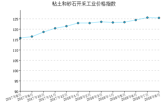 粘(zhan)土(tu)和砂石開(kai)采工業價格指數 |