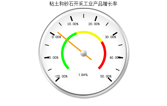 本月全國粘土和砂石開采工業產量同比去年同月增長1.84%,累計增速比上月減少65.58%。