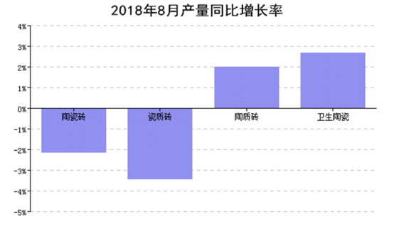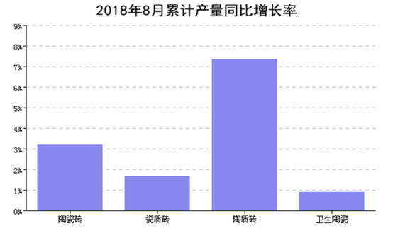 本月全國建筑衛生陶瓷工業產量同比去年同月增長3.15%,累計增速比上月減少7.16%。