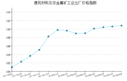 2018年(nian)(nian)8月(yue)(yue),建材(cai)(cai)價(jia)(jia)格(ge)指數為110.83,比(bi)上(shang)月(yue)(yue)上(shang)漲0.21%,比(bi)去年(nian)(nian)同月(yue)(yue)上(shang)漲9.76%,一(yi)月(yue)(yue)至本月(yue)(yue)平均(jun)比(bi)去年(nian)(nian)同期上(shang)漲11.15%。 價(jia)(jia)格(ge)指數比(bi)上(shang)月(yue)(yue)上(shang)漲的(de)行業有:混凝(ning)土與水泥(ni)制(zhi)品工(gong)(gong)業、防(fang)水建筑(zhu)(zhu)材(cai)(cai)料工(gong)(gong)業、石灰石膏工(gong)(gong)業、建筑(zhu)(zhu)用石工(gong)(gong)業、建筑(zhu)(zhu)技術玻璃工(gong)(gong)業、;價(jia)(jia)格(ge)指數比(bi)上(shang)月(yue)(yue)下降的(de)行業有水泥(ni)工(gong)(gong)業、墻(qiang)體材(cai)(cai)料工(gong)(gong)業、輕質建筑(zhu)(zhu)材(cai)(cai)料工(gong)(gong)業、隔熱保溫材(cai)(cai)料工(gong)(gong)業、粘土和砂石開采工(gong)(gong)業。