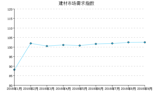 2018年(nian)9月(yue),建(jian)材市場需求(qiu)指數為(wei)102.58,比(bi)上(shang)月(yue)增(zeng)加0.10,比(bi)去年(nian)同月(yue)減(jian)少1.51。