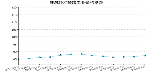 2018年(nian)9月,建筑技術玻璃工業產品出廠價格指數為87.33,比(bi)上(shang)(shang)月上(shang)(shang)漲0.86%,比(bi)去年(nian)同月上(shang)(shang)漲2.77%,一月至本月平均比(bi)去年(nian)同期(qi)上(shang)(shang)漲4.75%。