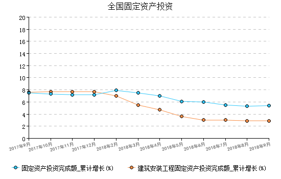 2018年(nian)9月(yue)全國固定資(zi)產(chan)投(tou)資(zi)累(lei)計(ji)增速增長(chang)5.4%,其(qi)中建筑安(an)裝工(gong)程投(tou)資(zi)累(lei)計(ji)增速增長(chang)2.9%。