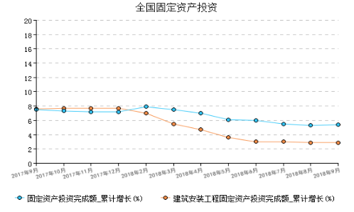 2018年9月全國固定資產投資累計增(zeng)(zeng)速(su)增(zeng)(zeng)長5.4%,其中建筑(zhu)安裝工程投資累計增(zeng)(zeng)速(su)增(zeng)(zeng)長2.9%。