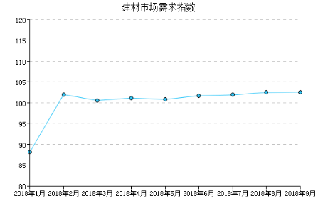 2018年(nian)9月(yue),建材市場需求指數為102.58,比(bi)上(shang)月(yue)增加0.10,比(bi)去年(nian)同月(yue)減少(shao)1.51。