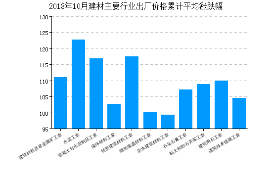 2018年(nian)10月,建(jian)(jian)材(cai)價格指(zhi)數為112.38,比(bi)(bi)(bi)(bi)上(shang)月上(shang)漲0.79%,比(bi)(bi)(bi)(bi)去年(nian)同(tong)(tong)月上(shang)漲8.44%,一月至(zhi)本月平均比(bi)(bi)(bi)(bi)去年(nian)同(tong)(tong)期上(shang)漲10.65%。 價格指(zhi)數比(bi)(bi)(bi)(bi)上(shang)月上(shang)漲的行業(ye)(ye)有(you):水泥工(gong)業(ye)(ye)、混凝土與水泥制品工(gong)業(ye)(ye)、粘土和砂石開采工(gong)業(ye)(ye)、建(jian)(jian)筑用(yong)石工(gong)業(ye)(ye)、建(jian)(jian)筑技術(shu)玻璃(li)工(gong)業(ye)(ye)、;價格指(zhi)數比(bi)(bi)(bi)(bi)上(shang)月下降的行業(ye)(ye)有(you)墻體(ti)材(cai)料工(gong)業(ye)(ye)、輕(qing)質建(jian)(jian)筑材(cai)料工(gong)業(ye)(ye)、隔熱保溫材(cai)料工(gong)業(ye)(ye)、防(fang)水建(jian)(jian)筑材(cai)料工(gong)業(ye)(ye)、石灰石膏工(gong)業(ye)(ye)、。