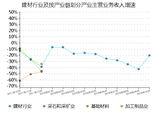 2018年10月(yue)規(gui)模以上工業(ye)(ye)增(zeng)(zeng)(zeng)加值同比(bi)增(zeng)(zeng)(zeng)長(chang)(chang)(chang)5.90%,累計增(zeng)(zeng)(zeng)長(chang)(chang)(chang)增(zeng)(zeng)(zeng)長(chang)(chang)(chang)6.40%。 跟其他工業(ye)(ye)行(xing)業(ye)(ye)相比(bi),建材(cai)行(xing)業(ye)(ye)增(zeng)(zeng)(zeng)加值增(zeng)(zeng)(zeng)速低于(yu)設備制(zhi)造、電器機械(xie)和器材(cai)制(zhi)造、電力(li)、熱力(li)生產及供應(ying)等行(xing)業(ye)(ye),高于(yu)化(hua)學原(yuan)料和化(hua)學品制(zhi)造、黑色金屬冶(ye)煉(lian)和壓延(yan)、有所金屬冶(ye)煉(lian)和壓延(yan)等行(xing)業(ye)(ye)。