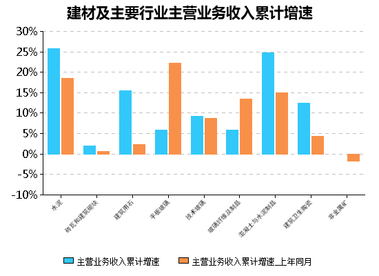 圖 12:建材及主要行業主營業務收入累計增速