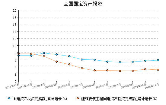 2018年11月全國固定資(zi)(zi)產(chan)投(tou)資(zi)(zi)累計(ji)增速(su)增長(chang)5.9%,其中建筑安(an)裝工(gong)程投(tou)資(zi)(zi)累計(ji)增速(su)增長(chang)3.2%。 圖(tu) 4:全國固定資(zi)(zi)產(chan)投(tou)資(zi)(zi)情況