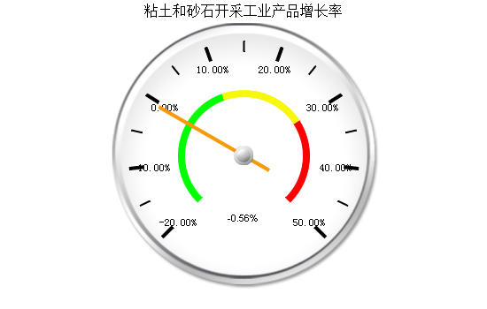 本月全國粘土和砂石開采工業產量同比去年同月減少0.56%,累計增速比上月減少71.33%。
