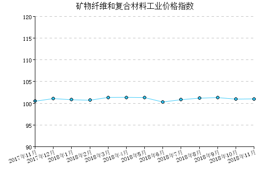 2018年11月(yue)(yue),礦物纖(xian)維和復合材料工業產品出(chu)廠價格指數為101.02,比(bi)上(shang)月(yue)(yue)上(shang)漲0.06%,比(bi)去年同月(yue)(yue)上(shang)漲0.54%,一月(yue)(yue)至本(ben)月(yue)(yue)平均比(bi)去年同期上(shang)漲1.01%。