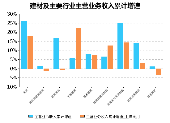 分行業來看:房地產業累計投資增速增長8個百分點;水利、環境和公共設施投資增速增長2個百分點;交通運輸、倉儲和郵政業投資增速增長5個百分點;制造業投資增速增長10個百分點。