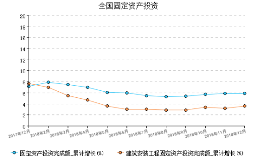 2018年12月全國固定資產投(tou)(tou)資累(lei)計(ji)增(zeng)(zeng)速增(zeng)(zeng)長5.9%,其中(zhong)建筑(zhu)安裝工程投(tou)(tou)資累(lei)計(ji)增(zeng)(zeng)速增(zeng)(zeng)長3.6%。