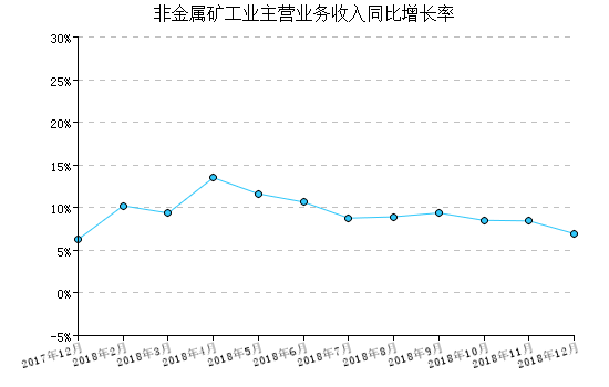2018年12月規模以上工(gong)業(ye)增(zeng)加值(zhi)同(tong)比增(zeng)長5.70%,累(lei)計增(zeng)長增(zeng)長6.20%。 跟其他(ta)工(gong)業(ye)行(xing)(xing)業(ye)相比,建材(cai)行(xing)(xing)業(ye)增(zeng)加值(zhi)增(zeng)速低(di)于設(she)備制(zhi)造、電器機械和(he)器材(cai)制(zhi)造、電力、熱力生(sheng)產及供應(ying)等(deng)行(xing)(xing)業(ye),高于化學原料(liao)和(he)化學品制(zhi)造、黑色(se)金屬(shu)冶煉和(he)壓延、有所(suo)金屬(shu)冶煉和(he)壓延等(deng)行(xing)(xing)業(ye)。