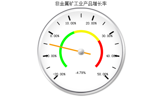 本月全國非金屬礦工業產量同比去年同月減少4.79%,累計增速比上月減少22.89%。