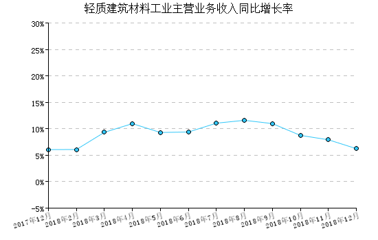 本月全國輕質建筑材料工業產量同比去年同月增長4.99%,累計增速比上月增長20.05%。