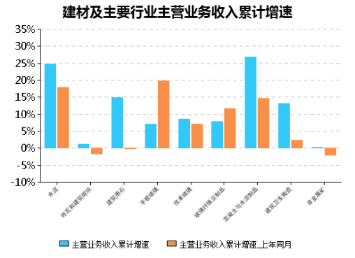 圖 8:建材及主要行業主營業務收入累計增速
