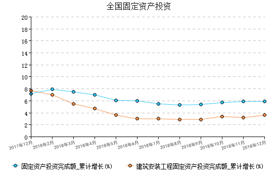 2018年12月全(quan)國固(gu)定資(zi)(zi)產投資(zi)(zi)累計(ji)增(zeng)速(su)增(zeng)長(chang)5.9%,其(qi)中建筑安裝工(gong)程投資(zi)(zi)累計(ji)增(zeng)速(su)增(zeng)長(chang)3.6%。