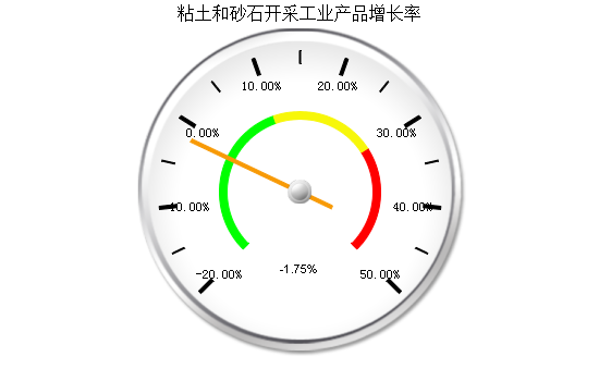本月全國粘土和砂石開采工業產量同比去年同月減少1.75%,累計增速比上月增長212.56%。