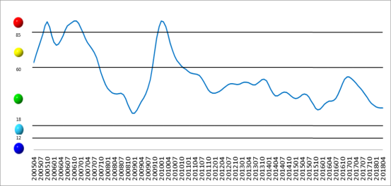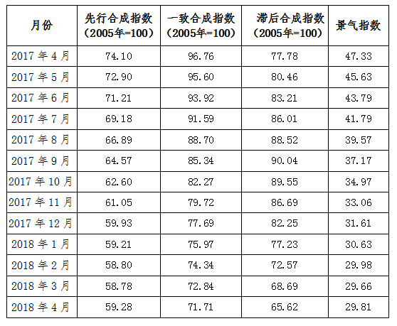 表(biao)1 2017年4月(yue)至2018年4月(yue)中色鉛鋅(xin)產業月(yue)度景氣(qi)指數