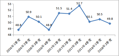 圖1 2016年1季(ji)(ji)度至2018年2季(ji)(ji)度有色金屬企(qi)業信(xin)心指(zhi)數