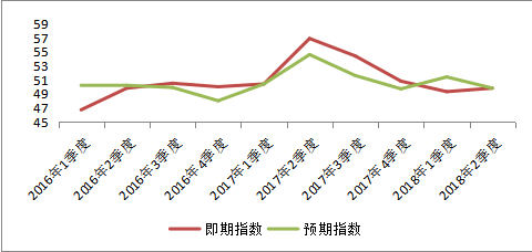 圖(tu)2 2016年1季度(du)至(zhi)2018年2季度(du)有色(se)金屬企業即期指(zhi)數與預期指(zhi)數