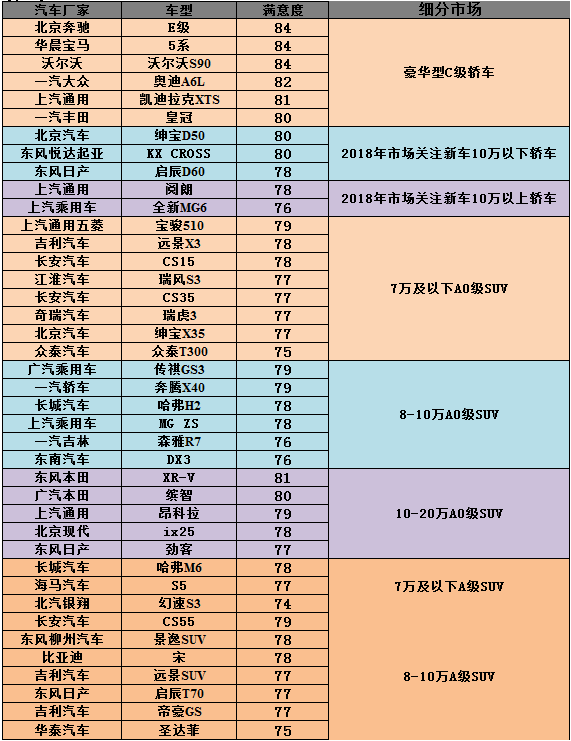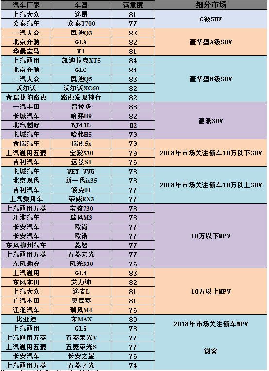附1 各品(pin)牌車型用戶(hu)滿意度