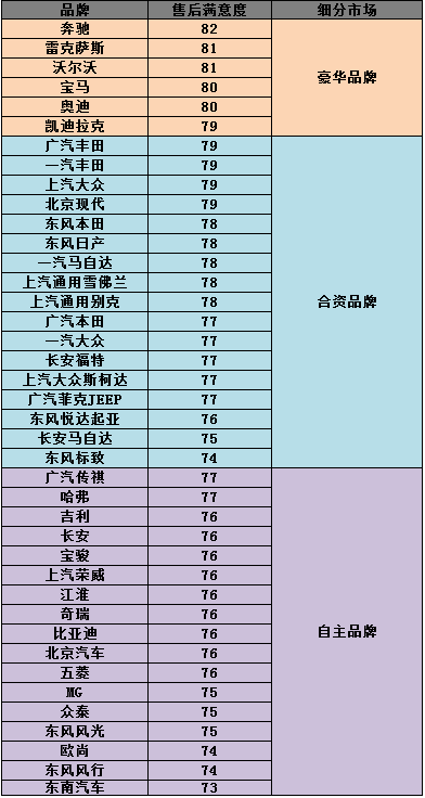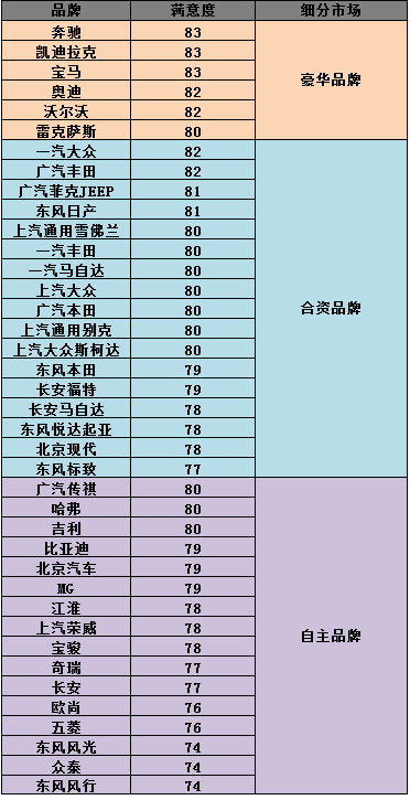 合資品(pin)牌(pai)(pai)(pai)中,德系(xi)(xi)滿意(yi)(yi)度(du)81分(fen),同比(bi)提高1分(fen);日系(xi)(xi)滿意(yi)(yi)度(du)80分(fen),同比(bi)提高1分(fen);美(mei)系(xi)(xi)滿意(yi)(yi)度(du)80分(fen),同比(bi)提高2分(fen);韓系(xi)(xi)滿意(yi)(yi)度(du)78分(fen),同比(bi)提高1分(fen);法系(xi)(xi)77分(fen),與去年持平。韓系(xi)(xi)和(he)法系(xi)(xi)品(pin)牌(pai)(pai)(pai)在(zai)贏得用戶滿意(yi)(yi)和(he)市場份額(e)方面遭受到自主品(pin)牌(pai)(pai)(pai)的(de)強力挑戰。