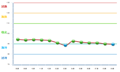 2018年9月紙和紙板容器制造行業景氣指數(shu)為(wei)89.65,較8月下(xia)降0.4個點。進入2018年9月,指數(shu)由(you)綠色(se)穩定(ding)區(qu)間轉向漸冷區(qu)間運行(見圖1)。