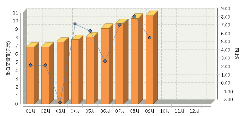 9月(yue)份,紙和紙板容(rong)器(qi)制造(zao)行(xing)業規模以(yi)上企(qi)業完(wan)成(cheng)出口交貨值(zhi)(zhi)10.67億(yi)元(yuan)(yuan),同比增(zeng)長5.99%。較(jiao)5月(yue)份下降2.57個百分點(見圖(tu)3)。1月(yue)-9月(yue),完(wan)成(cheng)出口交貨值(zhi)(zhi)81.18億(yi)元(yuan)(yuan),同比增(zeng)長6.94%。全(quan)國(guo)紙和紙板容(rong)器(qi)制造(zao)行(xing)業連續三年月(yue)度出口交貨值(zhi)(zhi)對比見圖(tu)4。
