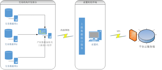 2.產(chan)權(quan)數據抽取(qu)及上(shang)報接(jie)口程(cheng)序:接(jie)口程(cheng)序由(you)機(ji)(ji)構(gou)用(yong)戶自行(xing)開發,此程(cheng)序用(yong)于抽取(qu)上(shang)報數據,并(bing)將數據按指定格式發送給前置機(ji)(ji)接(jie)口端;