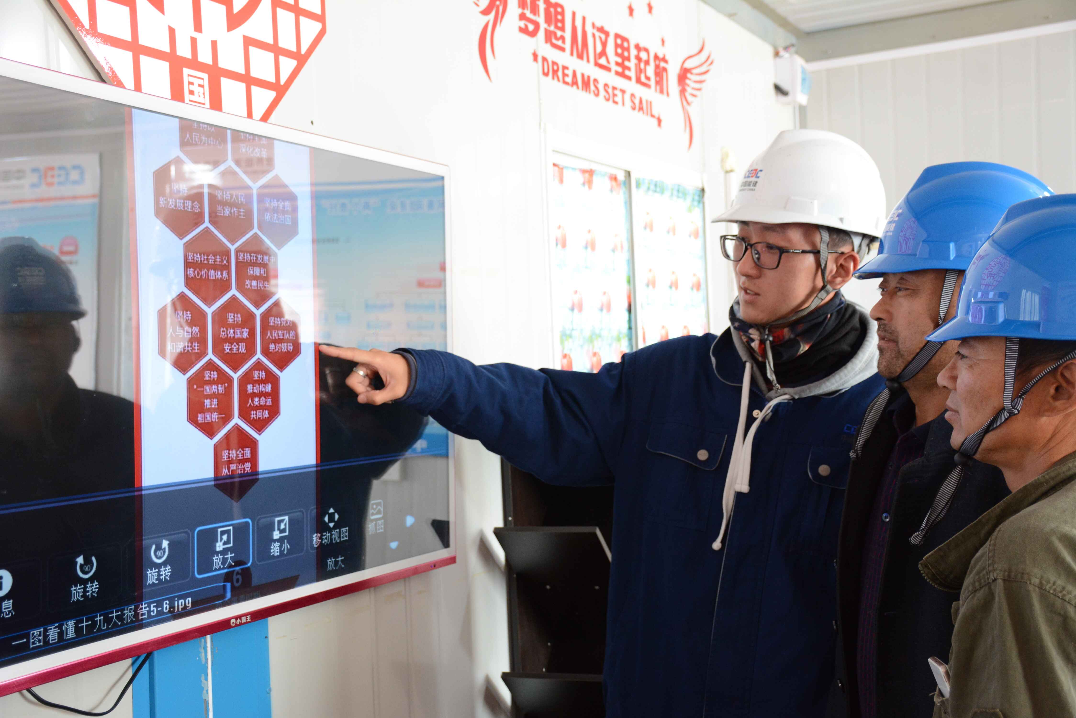 技術員張蒙蒙在黨(dang)員活動室(shi)內為工友講(jiang)黨(dang)的十九大報(bao)告