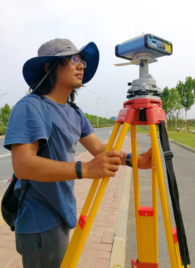 年輕建筑技術(shu)員馬謙在(zai)做項目前期測繪